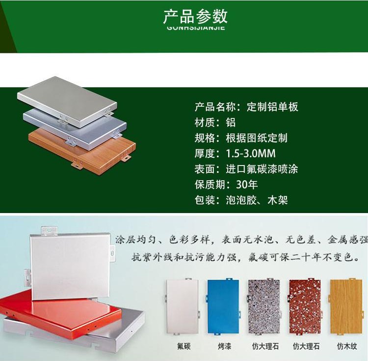 鋁翼專業(yè)鋁單板定製廠家,超大型廠(chǎng)家,實力雄厚(hòu),來圖都可(kě)定製。幕牆鋁單板、氟碳鋁(lǚ)單板、木紋鋁單板、石紋鋁單板、衝孔鋁單(dān)板、雙曲鋁單板、雕花鋁單板、外牆鋁單板(bǎn)定製。