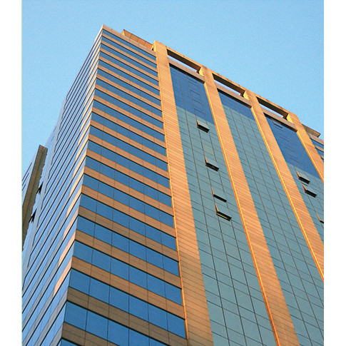 蔽護和不采(cǎi)光的牆壁,代替(tì)馬賽克和一般(bān)噴沙外牆。鋁單板幕(mù)牆 作為(wéi)鋁單板幕(mù)牆的一種,以其質地輕,強度好的物點在高層建築的(de)作用上有優勢,由於高層建築時刻受到各種荷載的作用,所受風壓大,馬賽克容易脫落,硬度不強 的幕牆材料會因為(wéi)大的風壓而變形。高層建築作為幕牆使用大(dà)戶,鋁單板幕牆(qiáng)基於它獨特的優勢而得以大量使用