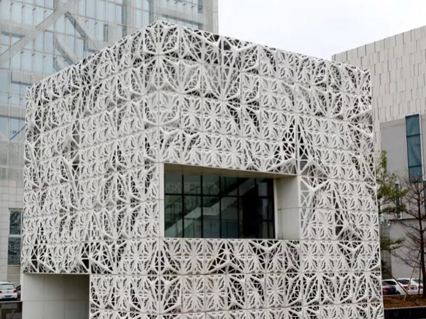鏤空鋁單(dān)板、雕花鋁單(dān)板不僅能用於室內裝飾天花、屏(píng)風、陽台、隔斷等,還可以用於幕牆裝飾,如:大堂門麵、大堂天花、大型建築外牆、主會議(yì)室、包柱(zhù)裝飾、隔音建(jiàn)築設施、體育館、機場、車站、地鐵站等等(děng)。